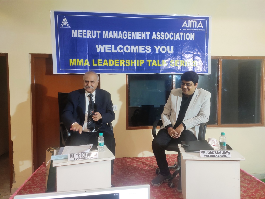 Meerut Management Association organized Leadership Talk on Reminiscences – Learning on 27th February 2021 at Management House, Pallavpuram. The eminent speaker was Mr. Trilok Anand, Founder, Sanspareils Greenlands (SG). Mr. Gaurav Jain, President, MMA was moderator of the talk. Members and faculties exchanged questions and additional inputs as a part of knowledge sharing session. The talk was widely appreciated by all attendees.