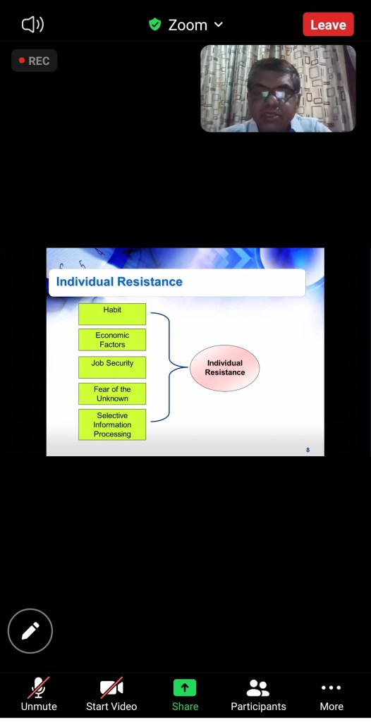 A webinar was organized by Meerut Management Association in association with Gwalior Management Association on 22nd May, 2021 via Zoom. Theme of this webinar was Change Management. The eminent speaker was Dr. Manoj Patwardhan, Professor (Management) ABV-IIITM, Gwalior. Mr. Manish Jain, Sr. Vice President MMA was moderator of the webinar. The question-answer session was conducted by Dr. Dev Arora, Special Invitee, MMA and vote of thanks was presented by Mr. Mohit Verma from Gwalior Management Association. MMA Members, GMA members and guests exchanged questions and additional inputs as a part of knowledge sharing session. The webinar was widely appreciated by all attendees.